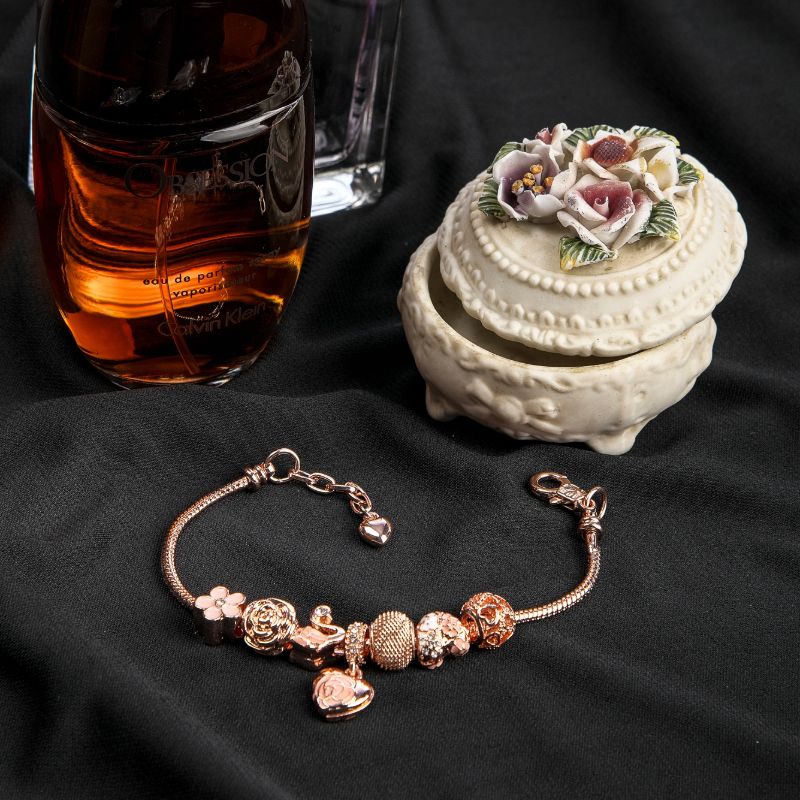 Bransoletka wykonana jest z rodowanego różowego złota, co zapewnia jej wyjątkowy połysk oraz odporność na zarysowania i przebarwienia. Proces rodowania dodatkowo wzmacnia biżuterię, dzięki czemu pozostaje ona piękna na długie lata. Starannie osadzony kryształ Swarovski dodaje bransoletce subtelnego blasku i sprawia, że przyciąga wzrok w każdej sytuacji.