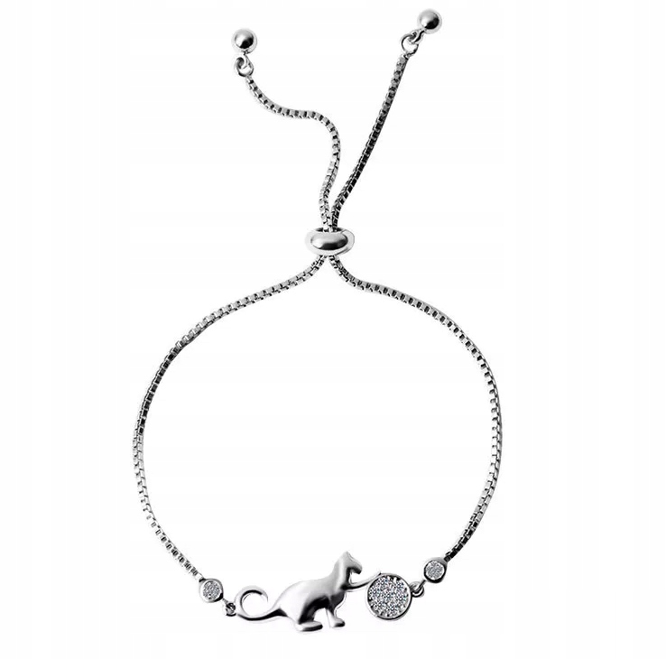 Bransoletka damska srebrna 925 Kot Celebrytka to biżuteria, która podkreśli Twój styl i doda wyjątkowego blasku każdemu dniu. Niezależnie od okazji, ten subtelny, ale efektowny dodatek z pewnością przyciągnie spojrzenia. Wybierz bransoletkę, która łączy w sobie elegancję, komfort noszenia oraz modny design.