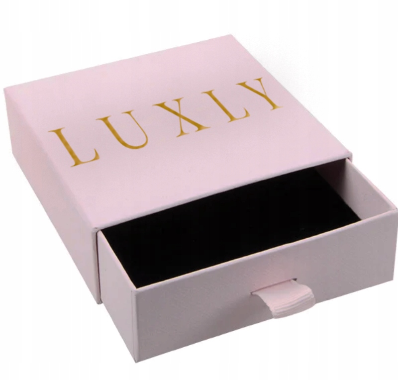 - Ekskluzywne różowe pudełko – Zawiera elegancką szufladkę, która wysuwa się po pociągnięciu za tasiemkę, a wnętrze pokryte jest miękką, welurową gąbką.