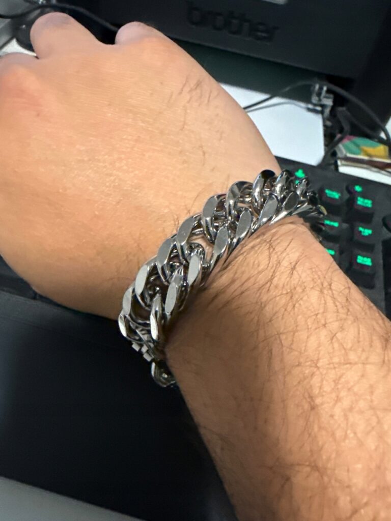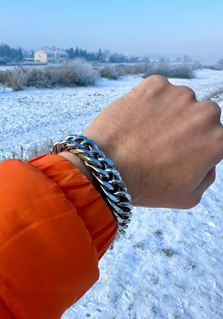 Bardzo masywna i solidna bransoletka – dokładnie taka, jakiej oczekiwałem. Srebro wygląda świetnie, a splot pancerny robi wrażenie.