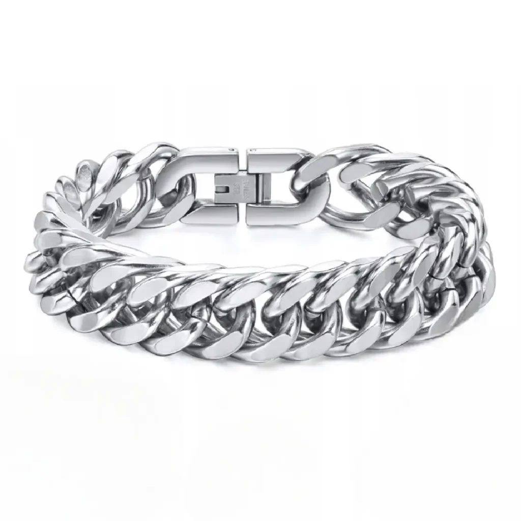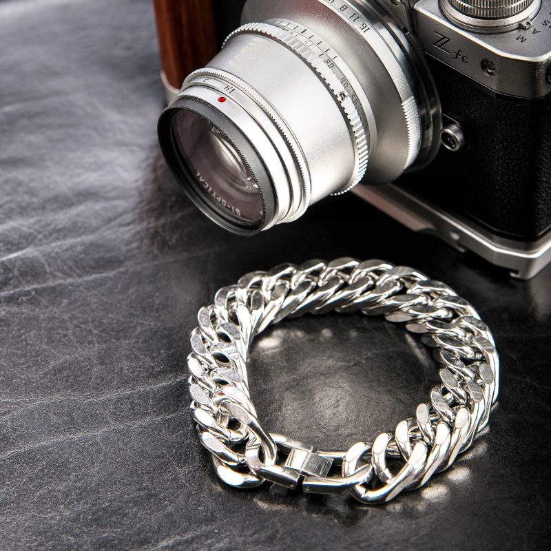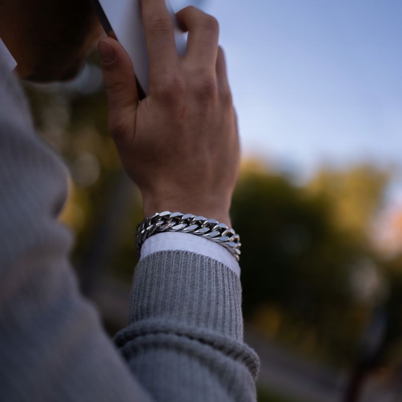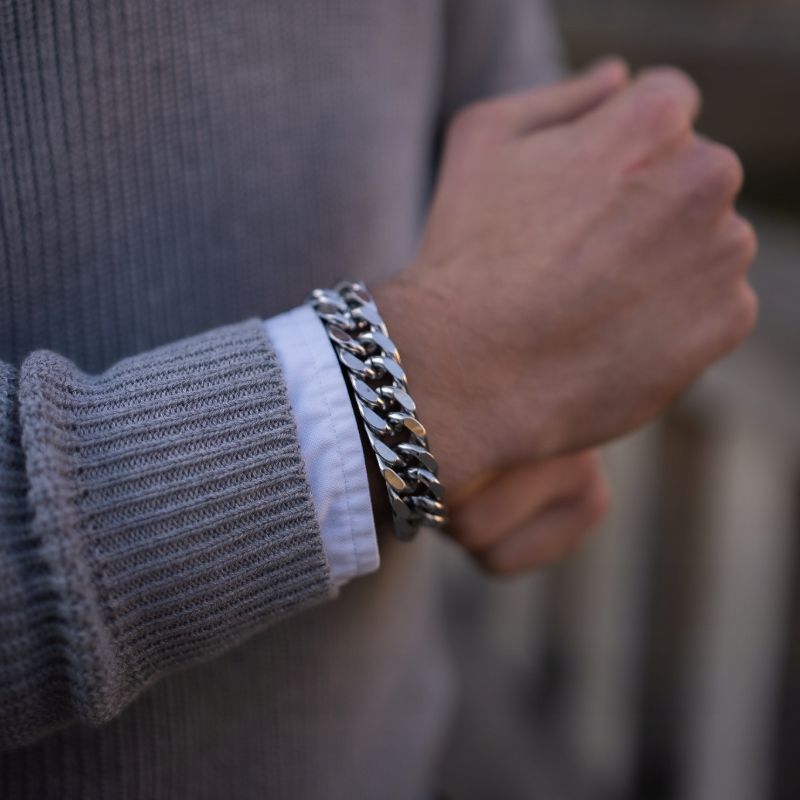 Bransoletka jest ciężka, konkretna i bardzo męska. Na ręce prezentuje się luksusowo i przyciąga uwagę.