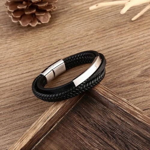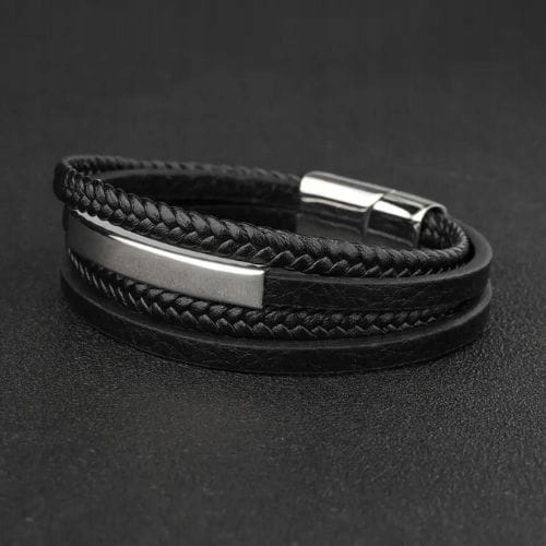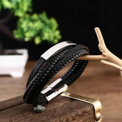 5 opinii dla Bransoletka męska z czarną skórą i grawerem