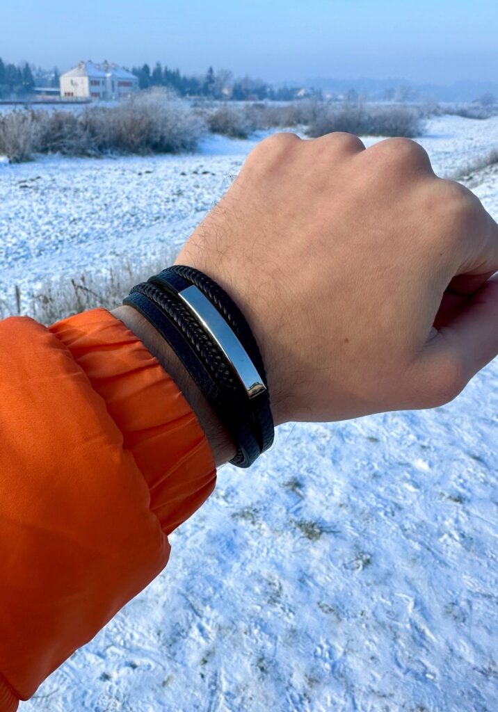 Oferujemy bransoletki męskie ze skóry naturalnej, stali chirurgicznej 316L oraz wytrzymałego sznurka jubilerskiego. Wszystkie materiały są odporne na codzienne użytkowanie, nie uczulają i gwarantują długą trwałość.