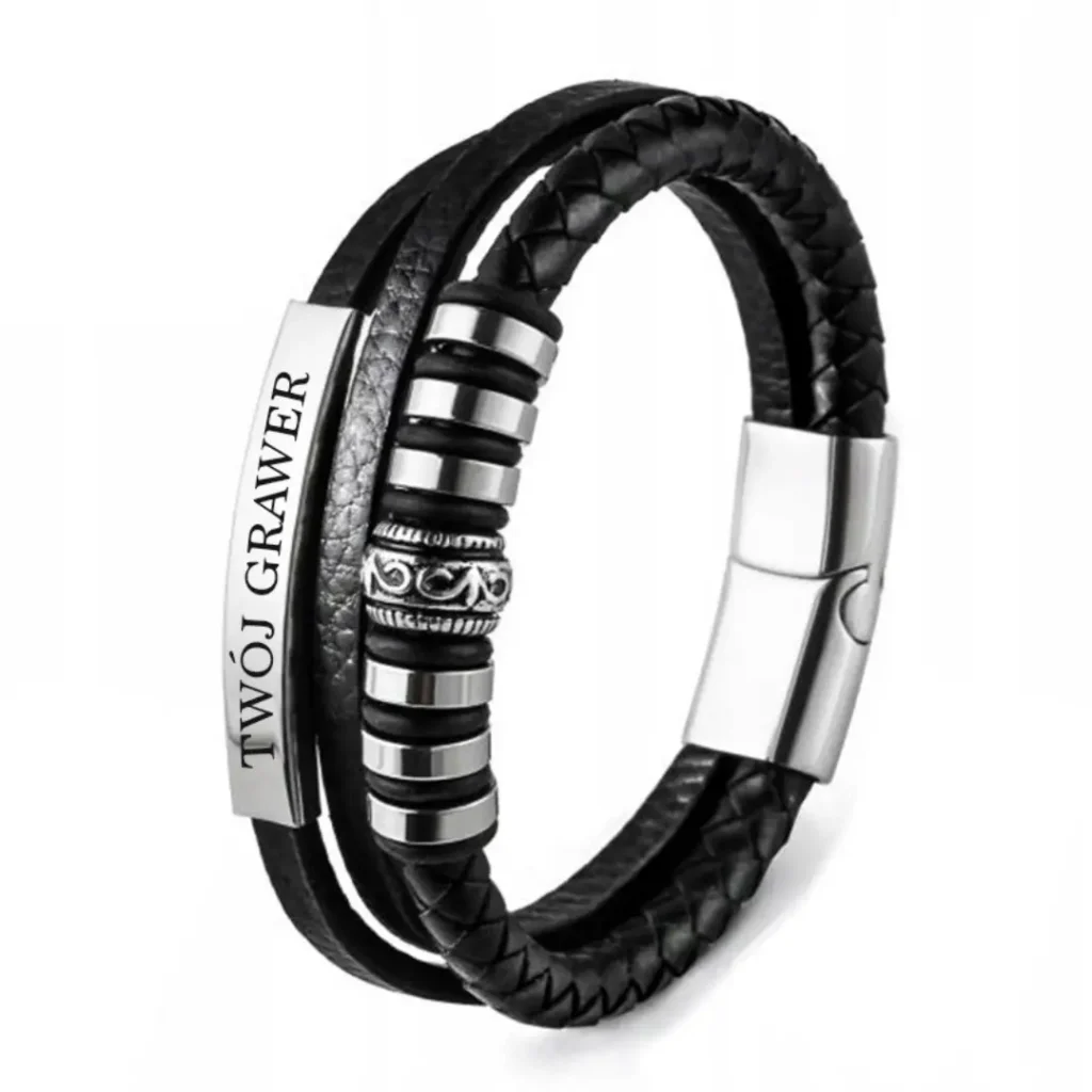 Bransoletka Męska Czarna ze Skóry z Grawerem – Ekskluzywna i Personalizowana Biżuteria dla Mężczyzn