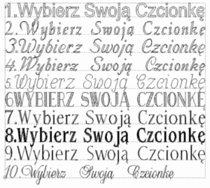 lub Grawer – Symbol nr: 2 oraz własny tekst (zalecamy do 200 liter żeby wszystko ładnie się zmieściło)