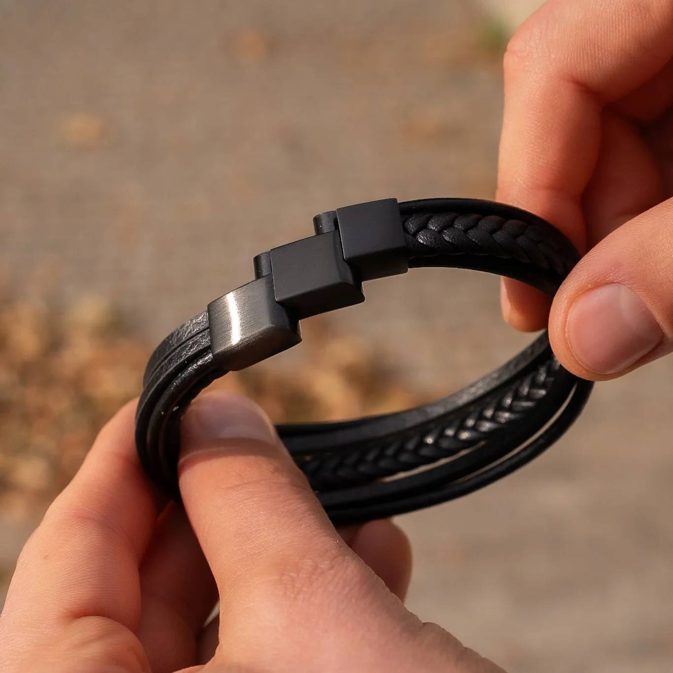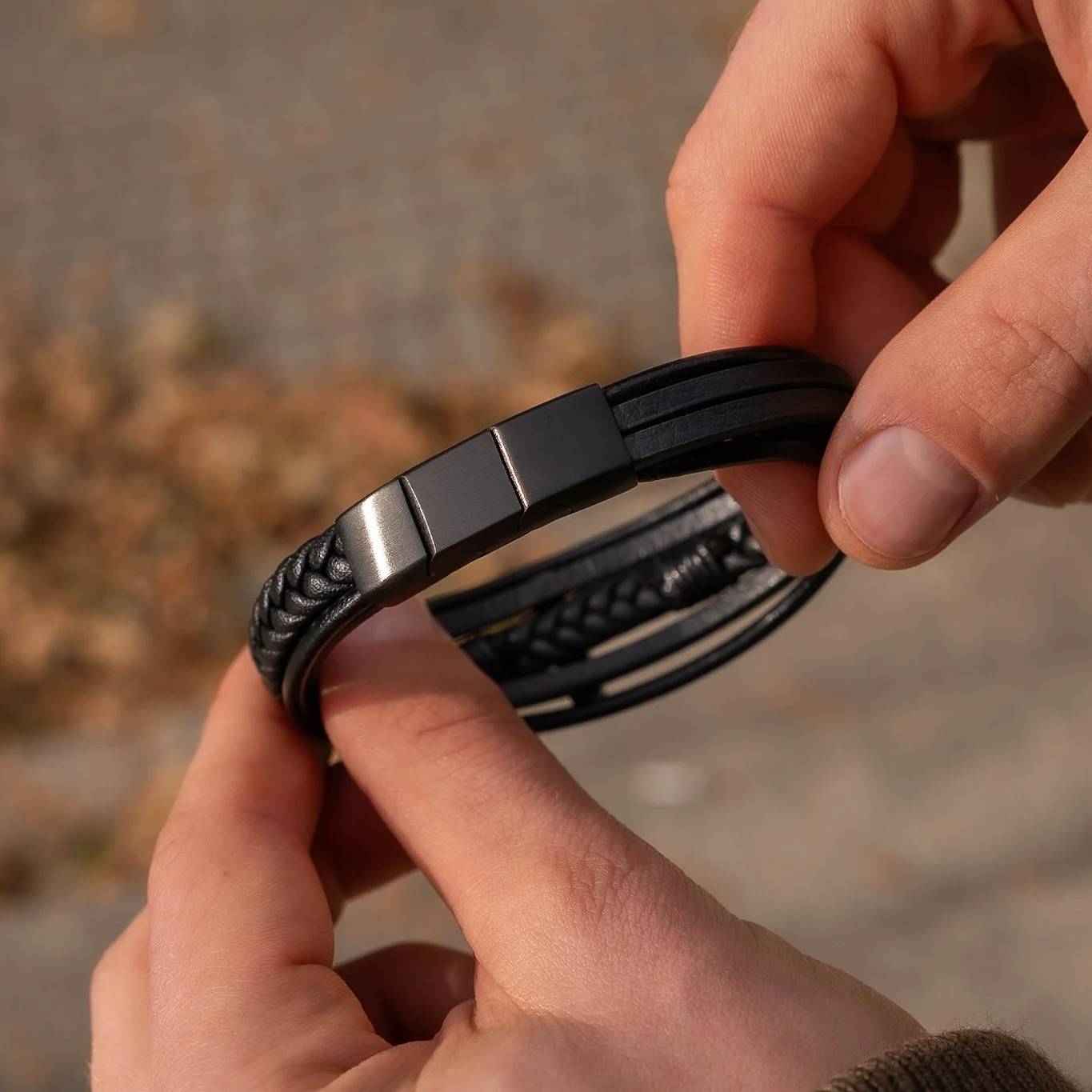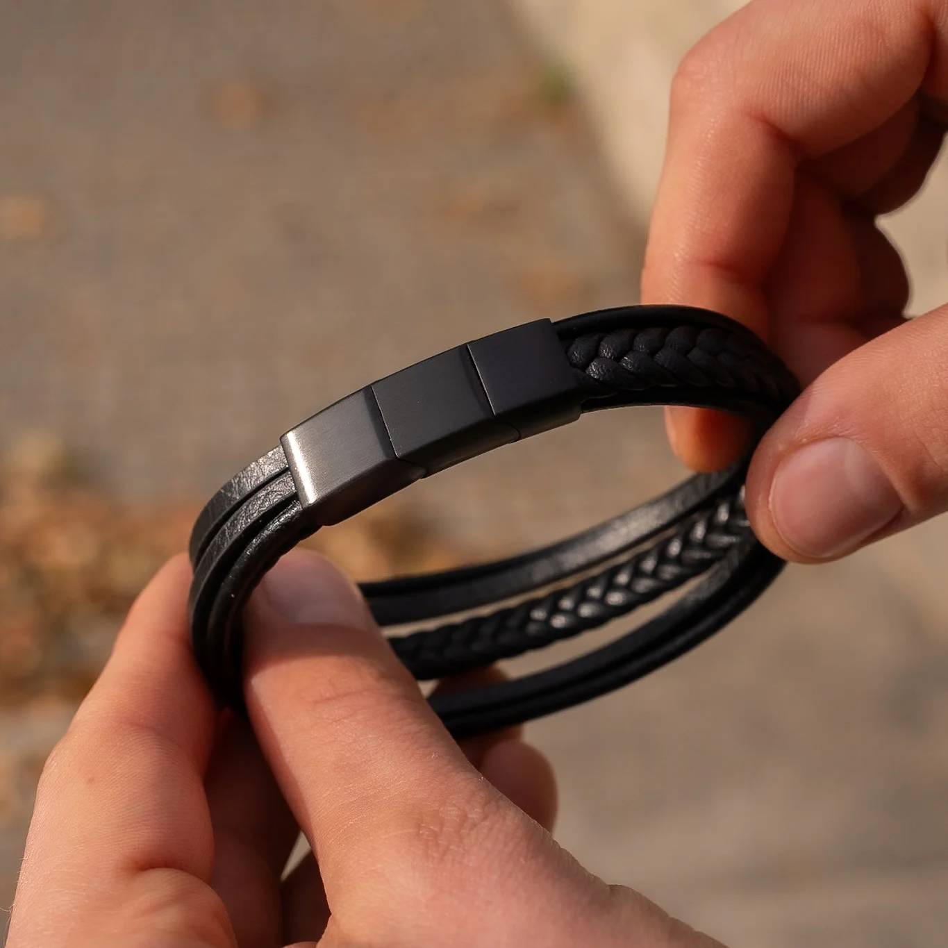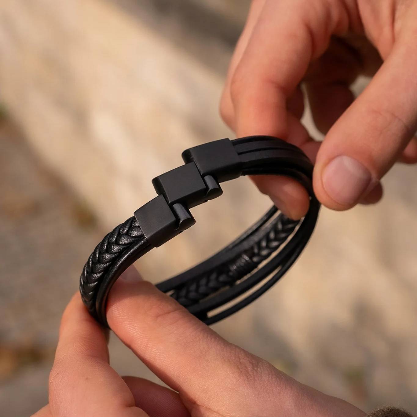 Oferujemy bransoletki męskie ze skóry naturalnej, stali chirurgicznej 316L oraz wytrzymałego sznurka jubilerskiego. Wszystkie materiały są odporne na codzienne użytkowanie, nie uczulają i gwarantują długą trwałość.