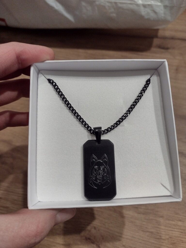 Wysokiej jakości materiały: Naszyjnik wykonany z trwałej stali szlachetnej, pokrytej matową powłoką tytanową w kolorze czarnym, która dodaje mu nowoczesnego i eleganckiego wyglądu.