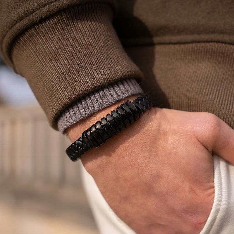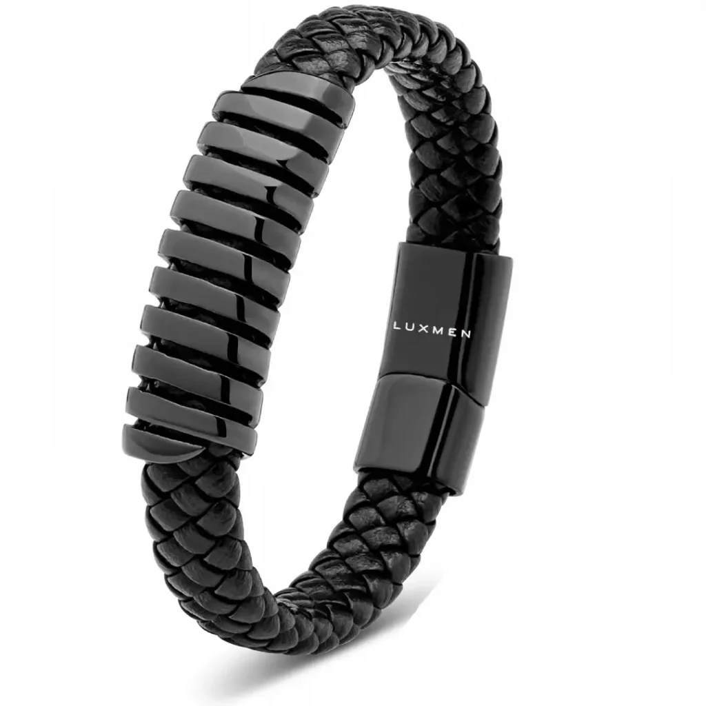 Odkryj elegancję i trwałość w wyjątkowej bransoletce marki LUXMEN®. Ręcznie wykonana we Włoszech, bransoletka z plecionej skóry jagnięcej i czarnymi elementami to idealny wybór dla nowoczesnego mężczyzny.