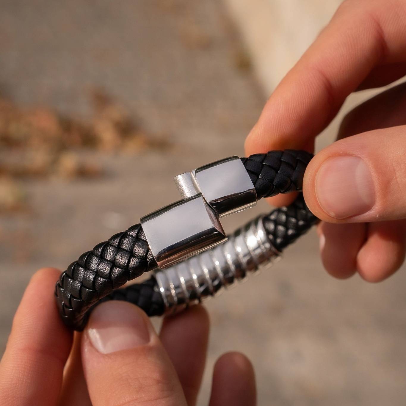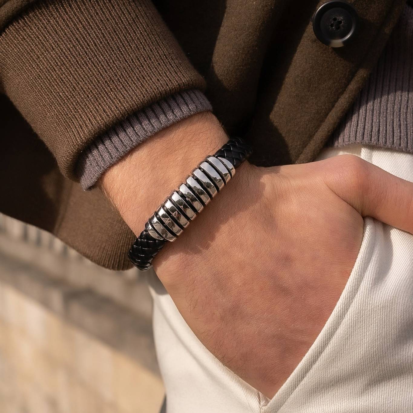 Odkryj elegancję i trwałość w wyjątkowej bransoletce marki LUXMEN®. Ręcznie wykonana we Włoszech, bransoletka z plecionej skóry jagnięcej i posrebrzanymi elementami to idealny wybór dla nowoczesnego mężczyzny.