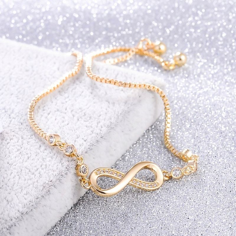 Bransoletka z motywem nieskończoności to symbol trwałości i wiecznych uczuć. Jej delikatny wygląd i uniwersalny design czynią ją idealnym wyborem zarówno na co dzień, jak i na wyjątkowe okazje. Dzięki precyzyjnemu wykonaniu i trwałej pozłacanej powłoce, bransoletka zachowa swój blask przez długi czas.